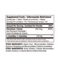 La combinación de Cromo (en forma de picolinato, que mejora su absorción) y L-Carnitina contribuye a disminuir la grasa corporal, estimular el desarrollo muscular y reducir los antojos por carbohidratos y azúcares.