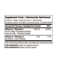 Vitamina E 1000 UI + zinc, protege las células del daño causado por los radicales libres, mientras que el zinc es esencial para el funcionamiento óptimo del sistema inmunológico y la salud de la piel, gracias a sus propiedades antioxidantes y su apoyo al sistema inmunológico