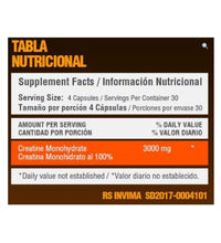 Cada cápsula contiene 3000 mg de creatina monohidratada.