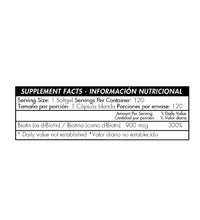 Biotin Healthy America es un suplemento nutricional premium que aporta 900 mcg de biotina (vitamina B7 o vitamina H) por cápsula, un nutriente esencial para fortalecer el cabello, la piel y las uñas, al mismo tiempo que apoya funciones clave en el metabolismo energético del organismo. Su fórmula concentrada ofrece la dosis óptima para promover una belleza natural desde el interior, ayudándote a lucir un cabello más fuerte y brillante, una piel más firme y saludable, y uñas más resistentes y menos quebradizas.